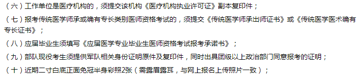 (五)執(zhí)業(yè)助理醫(yī)師申報執(zhí)業(yè)醫(yī)師考試的,須提交執(zhí)業(yè)助理醫(yī)師《醫(yī)師資格證書》、《醫(yī)師執(zhí)業(yè)證書》原件及復印件,《執(zhí)業(yè)助理醫(yī)師報考執(zhí)業(yè)醫(yī)師執(zhí)業(yè)期考核證明》(如在執(zhí)業(yè)注冊過程中有變更記錄,導致注冊時間不滿足報考年限的,須提供首次執(zhí)業(yè)注冊證明);