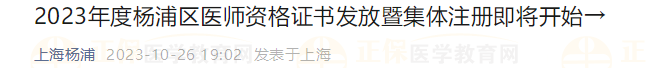 2023年上海楊浦區(qū)醫(yī)師資格證書發(fā)放暨集體注冊(cè)即將開始→
