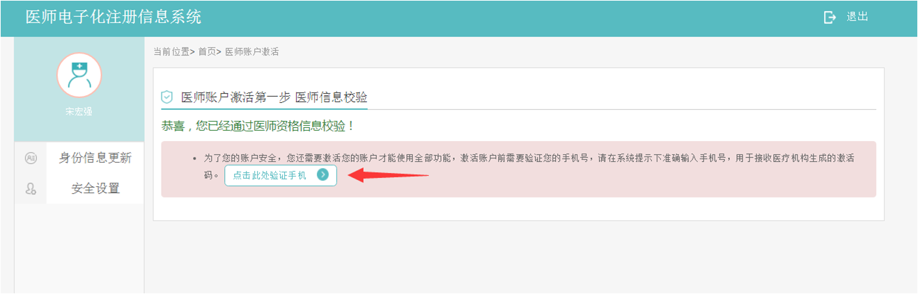 用戶登錄并驗證到資格或執(zhí)業(yè)信息后,需驗證您的手機號,如下圖所示: