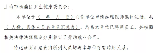 6.醫(yī)師集體注冊及資格證申請材料請于11月22日-11月26日交至楊浦區(qū)懷德路600號行政服務中心二樓B21號衛(wèi)生窗口。