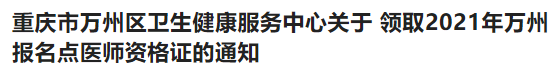 重慶市萬(wàn)州區(qū)衛(wèi)生健康服務(wù)中心關(guān)于領(lǐng)取2021年萬(wàn)州報(bào)名點(diǎn)醫(yī)師資格證的通知