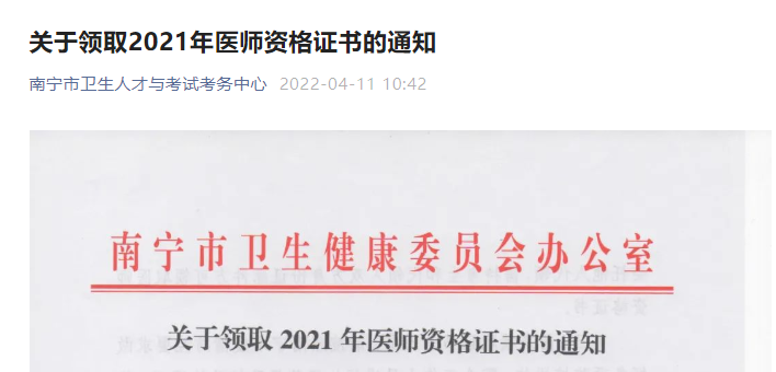 廣西考區(qū)南寧考點(diǎn)2021年醫(yī)師資格證書領(lǐng)取的通知
