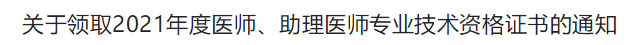 ?青島考點(diǎn)2021年度醫(yī)師、助理醫(yī)師專業(yè)技術(shù)資格證書領(lǐng)取通知
