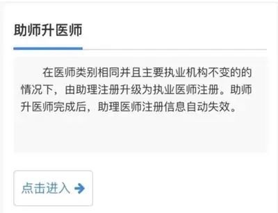 情況二:助理升為執(zhí)業(yè)醫(yī)師,若執(zhí)業(yè)類別、主執(zhí)業(yè)機(jī)構(gòu)和執(zhí)業(yè)范圍其中任何一項(xiàng)或多項(xiàng)發(fā)生了變更,請(qǐng)參考以下操作步驟: