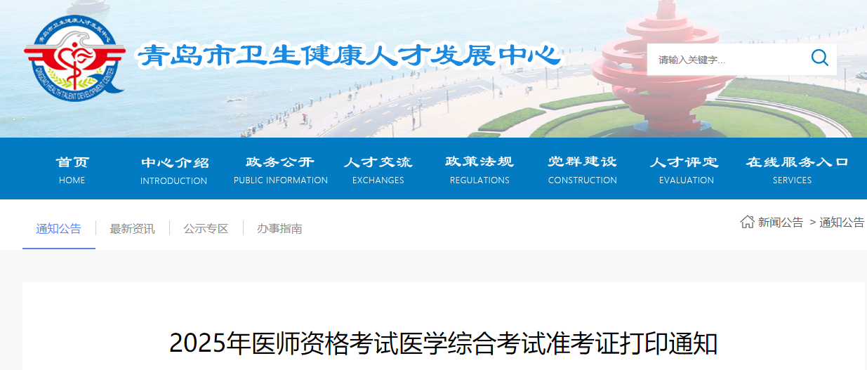 山東青島2025年醫(yī)師資格綜合筆試準(zhǔn)考證打印入口已開(kāi)通,速去!以下為青島考點(diǎn)官方通知,請(qǐng)相關(guān)考生按時(shí)打印準(zhǔn)考證,提前確認(rèn)好考場(chǎng)安排及考生須知!