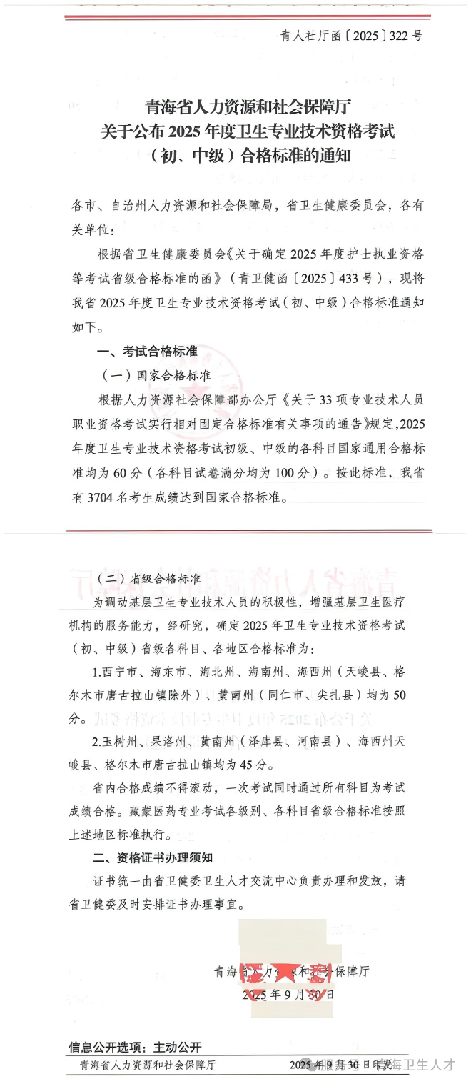 青海省關(guān)于公布2025年度口腔主治醫(yī)師考試合格標(biāo)準(zhǔn)的通知