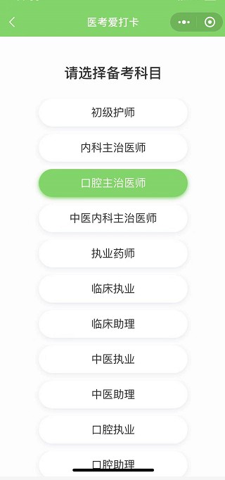 第二步:進(jìn)入小程序,選擇您的備考科目,“口腔主治醫(yī)師”