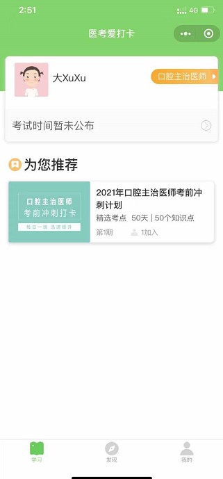 免費(fèi)刷題!2021口腔主治醫(yī)師《醫(yī)考愛打卡》小程序上線啦!