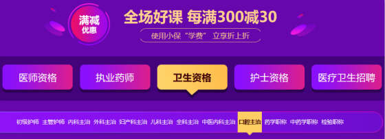 2020年口腔主治課程均參與滿減活動,可與小保學(xué)費(fèi)疊加使用,優(yōu)惠享不停~