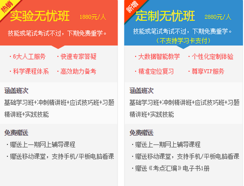 醫(yī)學(xué)教育網(wǎng)臨床助理醫(yī)師考試輔導(dǎo)培訓(xùn)班目前有特色直達(dá)班、精品無憂班、實驗無憂班、定制無憂班四個班次。輔導(dǎo)會針對每個考生的不同學(xué)習(xí)狀況,進(jìn)行有針對性的講解、訓(xùn)練、答疑、???,并對學(xué)習(xí)過程進(jìn)行跟蹤、分析、指導(dǎo),從整體上大幅提升學(xué)員的考試通過率。早報名,早準(zhǔn)備,早成功。