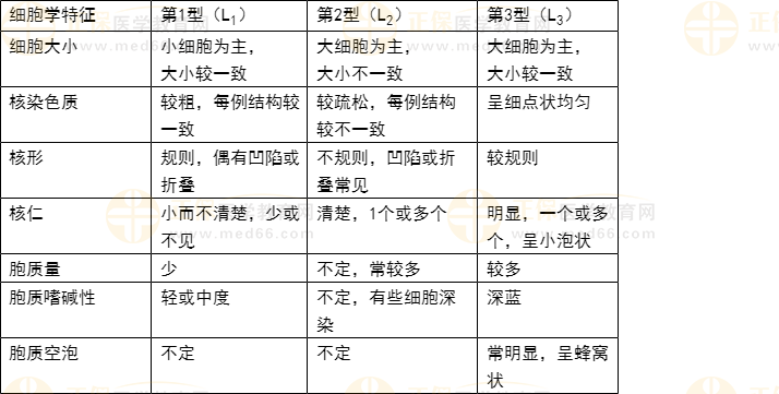 【解答】急性淋巴細胞白血病的FAB分型(見下表)