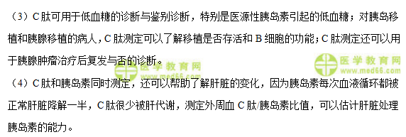 (2)C肽測定還用于指導胰島素用藥的治療,可協(xié)助確定病人是否繼續(xù)使用胰島素還是只需口服降糖藥或飲食治療。