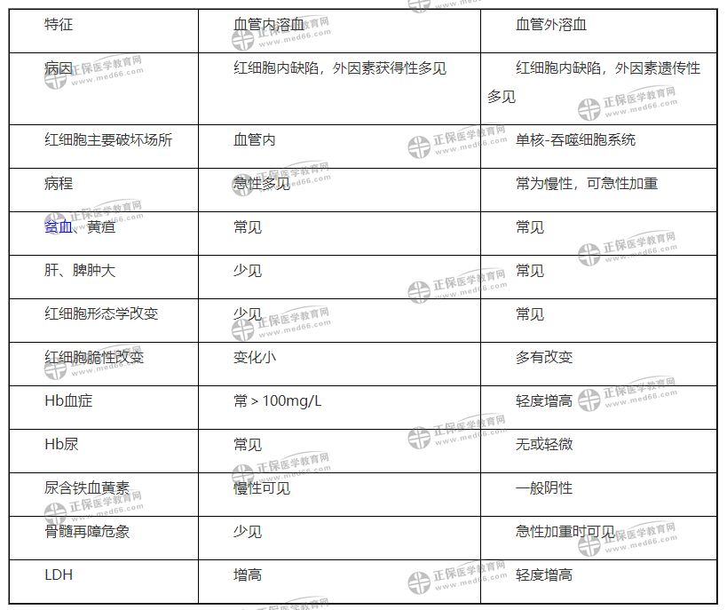 表格總結(jié)!血管內(nèi)與血管外溶血的鑒別考點(diǎn)&練習(xí)題