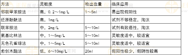 (1)化學法:利用血紅蛋白中的含鐵血紅素有類似過氧化物酶的作用,最終氧化色原物而使之呈色。