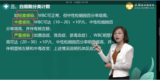 2022檢驗(yàn)主管技師考點(diǎn)回顧:不同程度感染白細(xì)胞變化