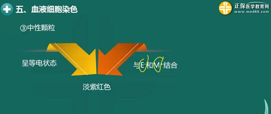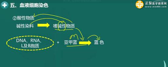 2.染色原理:既有物理的吸附作用,又有化學(xué)的親和作用。各種細(xì)胞成分化學(xué)性質(zhì)不同,對各種染料的親和力也不一樣。如血紅蛋白、嗜酸性顆粒為堿性蛋白質(zhì),與酸性染料伊紅結(jié)合,染粉紅色,稱為嗜酸性物質(zhì);細(xì)胞核蛋白、淋巴細(xì)胞、嗜堿性粒細(xì)胞胞質(zhì)為酸性,與堿性染料亞甲藍(lán)或天青結(jié)合,染紫藍(lán)色或藍(lán)色,稱為嗜堿性物質(zhì);中性顆粒呈等電狀態(tài)與伊紅和亞甲藍(lán)均可結(jié)合,染淡紫紅色,稱為嗜中性物質(zhì);原始紅細(xì)胞、早幼紅細(xì)胞胞質(zhì)、核仁含較多酸性物質(zhì),染成較濃厚的藍(lán)色;中幼紅細(xì)胞既含酸性物質(zhì),又含堿性物質(zhì),染成紅藍(lán)色或灰紅色;完全成熟紅細(xì)胞,酸性物質(zhì)徹底消失后,染成粉紅色。