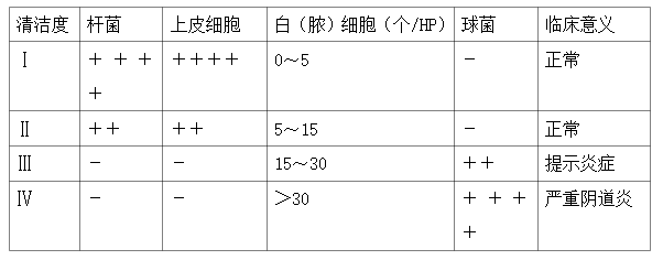 2.Ⅲ、Ⅳ度:為不清潔,??赏瑫r發(fā)現(xiàn)病原微生物,提示存在感染引起的陰道炎。