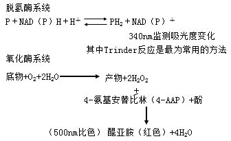如果酶促反應(yīng)的底物或產(chǎn)物沒(méi)有可直接檢測(cè)的成分,則可將反應(yīng)某一產(chǎn)物偶聯(lián)到另一個(gè)酶促反應(yīng)中,而達(dá)到檢測(cè)的目的。