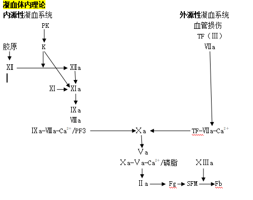 內(nèi)源凝血途徑:是指由FⅫ被激活到FⅨa-Ⅷa-Ca2+-PF3復(fù)合物形成的過程。