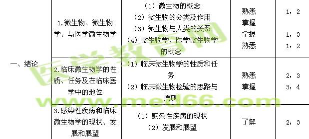5.埃立克體 | (1)臨床意義 (2)生物學(xué)特性 (3)微生物學(xué)檢測(cè) | 熟悉 了解 熟悉 | 2,3 1,3 3,4 | ||