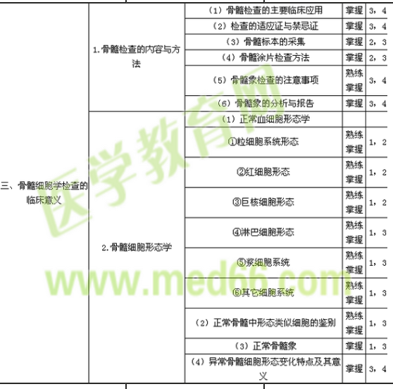 | 七、貧血及其細(xì)胞學(xué)檢驗 | 1.貧血概論 | (1)貧血的定義和分類 | 掌握 | 1,2 |