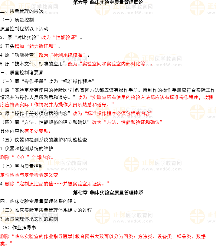 2022年檢驗(yàn)主管技師《臨床實(shí)驗(yàn)室質(zhì)量管理》教材變動(dòng)匯總