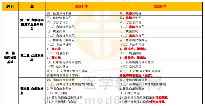2025年《臨床醫(yī)學(xué)檢驗技術(shù)(師)》教材公布了,經(jīng)醫(yī)學(xué)教育網(wǎng)專業(yè)教務(wù)校對發(fā)現(xiàn)了部分變動,具體內(nèi)容如下 :