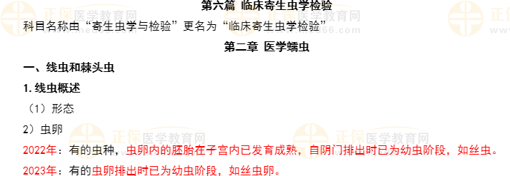 2023年檢驗技士《臨床寄生蟲學檢驗》教材變動匯總↓↓↓