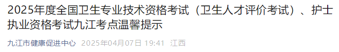 有關(guān)考試其他事項可關(guān)注“九江市衛(wèi)健委”、“九江市健康促進中心”微信公眾號。