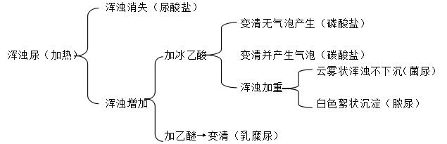 5.渾濁尿的化學(xué)鑒別,可依下列程序進(jìn)行: