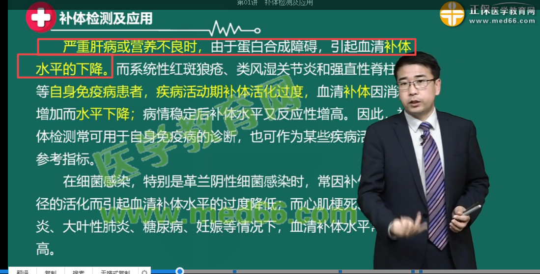 5.嚴(yán)重肝病或營(yíng)養(yǎng)不良時(shí),由于蛋白合成障礙,引起血清補(bǔ)體水平的下降。而系統(tǒng)性紅斑狼瘡、類(lèi)風(fēng)濕關(guān)節(jié)炎和強(qiáng)直性脊柱炎等自身免疫病患者,疾病活動(dòng)期補(bǔ)體活化過(guò)度,血清補(bǔ)體因消耗增加而水平下降;病情穩(wěn)定后補(bǔ)體水平又反應(yīng)性增高。