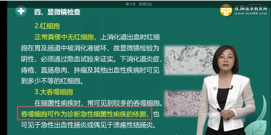 1.大吞噬細胞在細菌性痢疾時,常可見到較多的吞噬細胞。因此,吞噬細胞可作為診斷急性細菌性痢疾的依據(jù);吞噬細胞也可見于急性出血性腸炎或偶見于潰瘍性結腸炎。