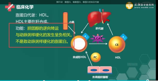 HDL從周圍組織得到膽固醇并在卵磷脂膽固醇酰基轉(zhuǎn)移酶(LCAT)作用下轉(zhuǎn)變成膽固醇酯后,直接將其運送到肝,在進一步代謝,起到清除周圍組織膽固醇的作用,并進而預(yù)防動脈粥樣硬化的形成,此過程稱膽固醇“逆向轉(zhuǎn)運”途徑。