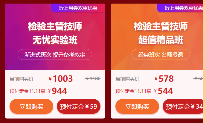 一年一度的“爽”11來了!購買檢驗主管技師課程如何才能最省錢,小編這就為大家奉上最新省錢攻略!省錢三步走!預(yù)付定金享8折優(yōu)惠!來看看!