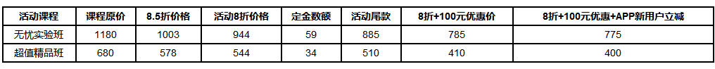 2.11月5日00:00-11月10日23:59期間,預(yù)付定金,享8折優(yōu)惠。具體說明:規(guī)定時(shí)間內(nèi)點(diǎn)擊頁面“預(yù)付定金”,11月11日00:00-23:59支付尾款,可享8折購課優(yōu)惠。“付定金”為課程原價(jià)的5%,“付尾款”為課程原價(jià)*80%-預(yù)付定金,如課程售價(jià)1000元,預(yù)付專享價(jià)為800元,需付定金50元,付尾款750元。