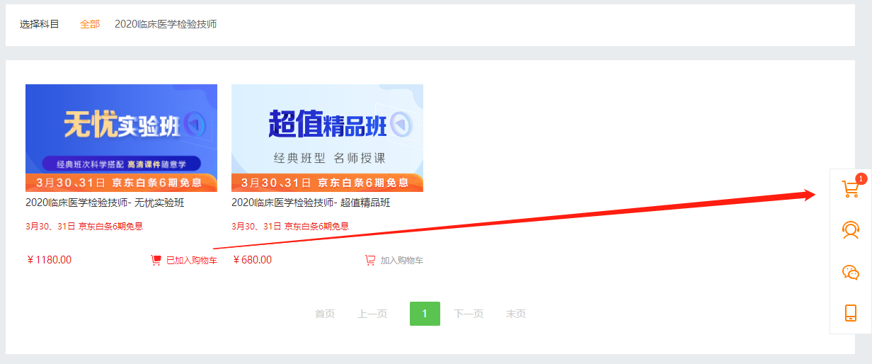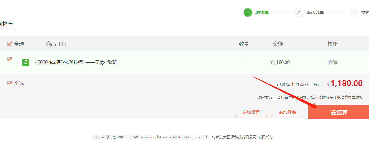 在購(gòu)物車內(nèi)確認(rèn)已選課程,確認(rèn)無(wú)誤后點(diǎn)擊“去結(jié)算”;