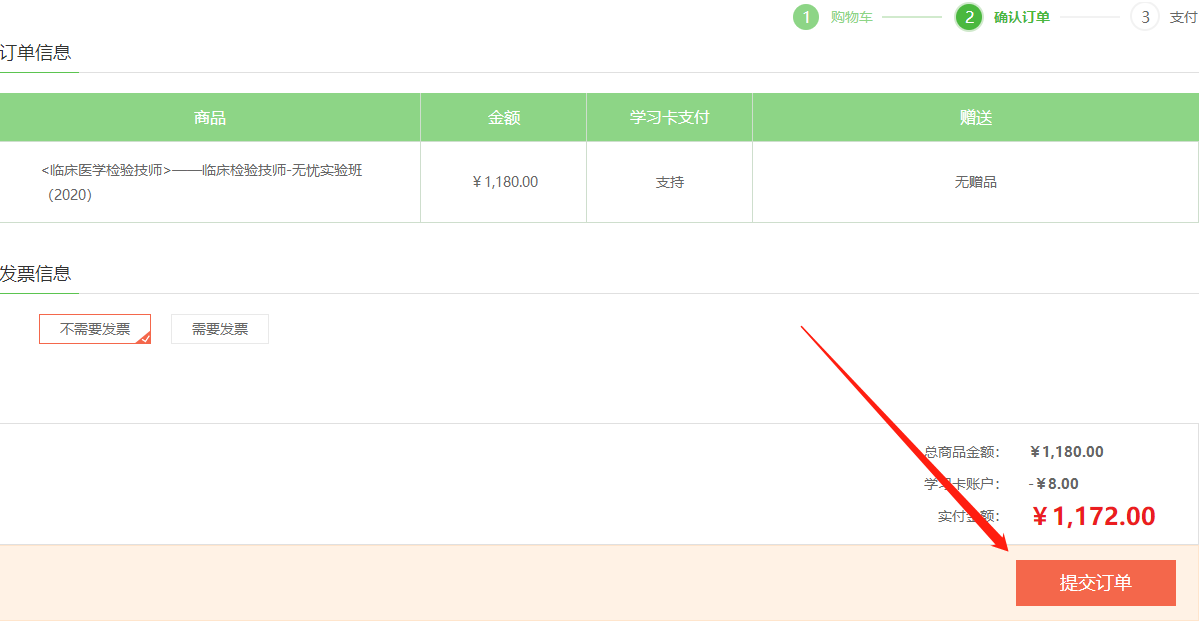 在訂單頁(yè)確認(rèn)無(wú)誤后,點(diǎn)擊“提交訂單”;