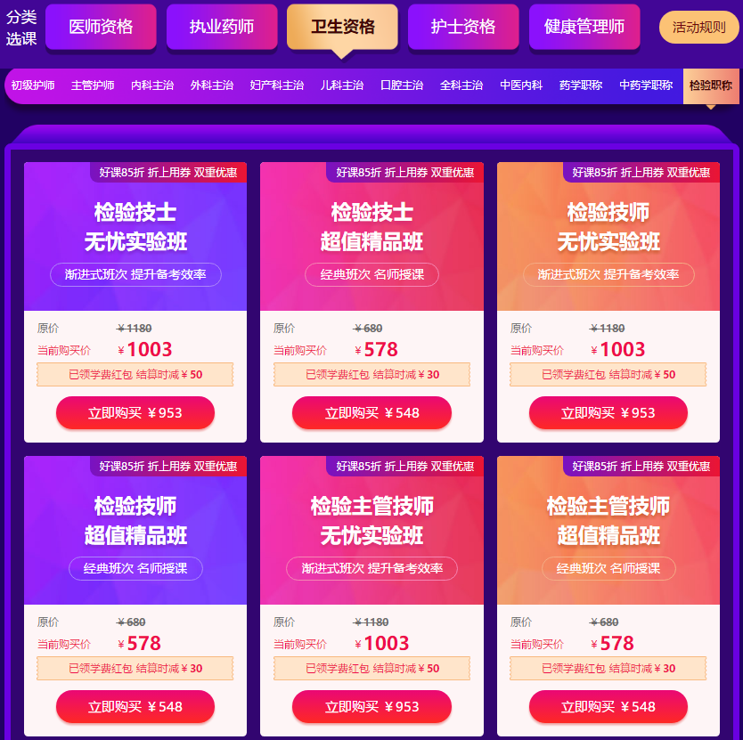 3. 溫馨提示:85折優(yōu)惠購課活動支持與學(xué)費紅包同時使用,單科不享受85折活動。