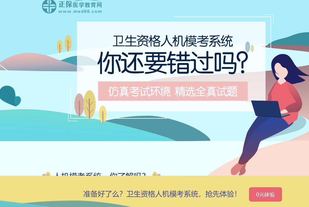 醫(yī)學(xué)教育網(wǎng)開發(fā)了與真實考試環(huán)境相同的人機模考系統(tǒng),致力于幫助考生提前了解機考形式、適應(yīng)考試環(huán)境、熟悉答題規(guī)則,更加輕松的應(yīng)對考試。免費體驗人機考試>>