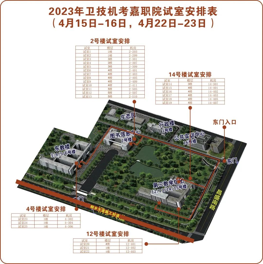 衛(wèi)生專業(yè)技術(shù)資格人機(jī)對話考試:嘉興職業(yè)技術(shù)學(xué)院(嘉興市南湖區(qū)城南街道昌盛南路1123號)(考生一律由學(xué)校東門進(jìn)入)