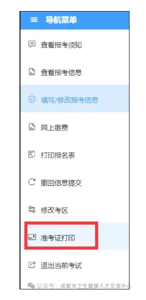 在左側(cè)導(dǎo)航欄選擇“準(zhǔn)考證打印”。