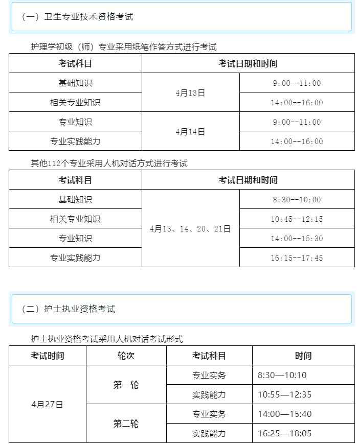 衛(wèi)生專業(yè)技術資格考試:2024年4月1日-4月21日期間;護士執(zhí)業(yè)資格考試:2024年4月16-4月28日期間。報考人員登錄自行打印準考證。參考人員務必攜帶準考證和有效身份證,紙筆考試(僅護理學(師)專業(yè))需攜帶必要文具(2B書寫鉛筆、橡皮、藍色或黑色墨水鋼筆或圓珠筆),按照準考證上規(guī)定的時間和地點參加考試,其余物品一律不得帶至座位。