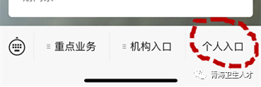 (1)尚未在“青海衛(wèi)生人才”微信公眾號實(shí)名注冊的考生,點(diǎn)擊右下角“個(gè)人入口”填寫相關(guān)信息