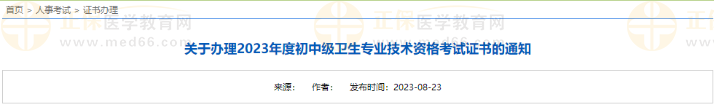 2023年度初中級衛(wèi)生專業(yè)技術(shù)資格考試合格人員證書已由省人事考試中心下發(fā)我市,現(xiàn)將證書辦理有關(guān)事項通知如下: