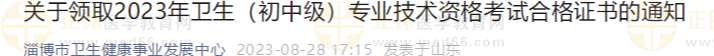 2023年衛(wèi)生(初中級)專業(yè)技術(shù)資格考試合格證書現(xiàn)已開始發(fā)放,請各單位及考生按以下要求盡快領(lǐng)?。?