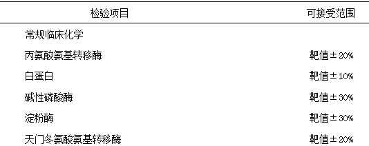 3、室間質量評價的評價準則作為分析質量要求:美國臨床實驗室改進修正案’88(CLIA’88)能力驗證(室間質量評價)分析質量要求。此評價準則也作為我國室間質量評價的標準。