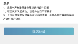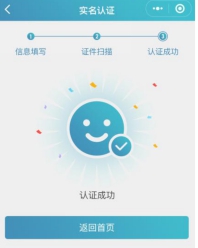 完成信息填寫(xiě)、證件掃描提交后完成認(rèn)證,顯示“認(rèn)證成功”。