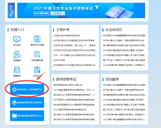 (1)登錄湖北衛(wèi)生人才官網(wǎng),點(diǎn)擊湖北衛(wèi)生人才綜合服務(wù)平臺(tái)入口