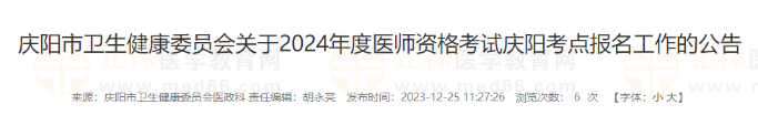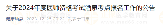 根據(jù)《國家衛(wèi)生健康委員會醫(yī)師資格考試委員會公告(2023年第2號)和省衛(wèi)生健康委《甘肅考區(qū)2024年度全國醫(yī)師資格考試公告》安排,現(xiàn)將2024年醫(yī)師資格考試酒泉考點考生報名有關(guān)事項通知如下:
