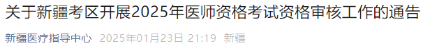 新疆考區(qū)2025年醫(yī)師資格考試資格審核工作通過網上審核模式進行(現役軍人和部隊文職人員除外),現將有關事項通告如下